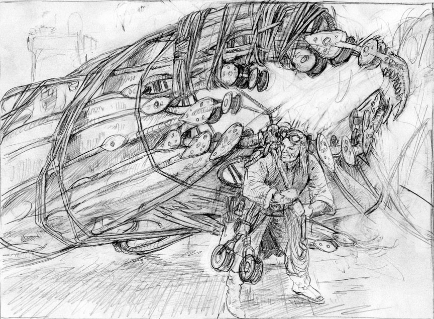 From me, Raoul requested a painting of Gandalf. I chose a moment during the Fellowship of the Ring's trek through the mines of Moria. Unsure of the way, and weary from the long journey through the dark, they have stopped to rest. The fate of the mission rests on his ability to remember the way and lead them safely through. In his anxiety, and perhaps troubled by a prescience of the challenge he will soon face, Gandalf needs a smoke.